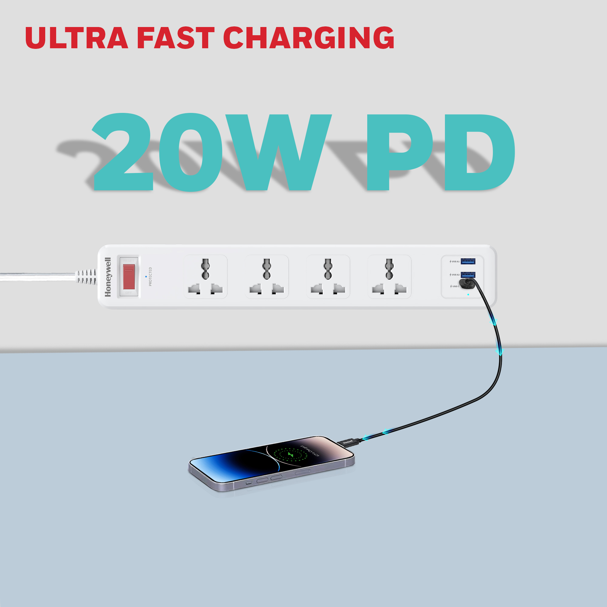 The Honeywell 4 Outlet Surge Protector is a reliable solution for device protection and efficient charging. Featuring a master switch and serving as a spike guard/extension board, it provides 4 outlets for versatile connectivity. Equipped with PD20W (Power Delivery) and 2 USB ports, it ensures swift and convenient charging. With 471 Joules surge protection, a 1.8-meter cord, Device Secure Warranty (DSW), and automatic overload protection, it prioritizes safety and ease of use. Backed by a 3-year manufacturer warranty