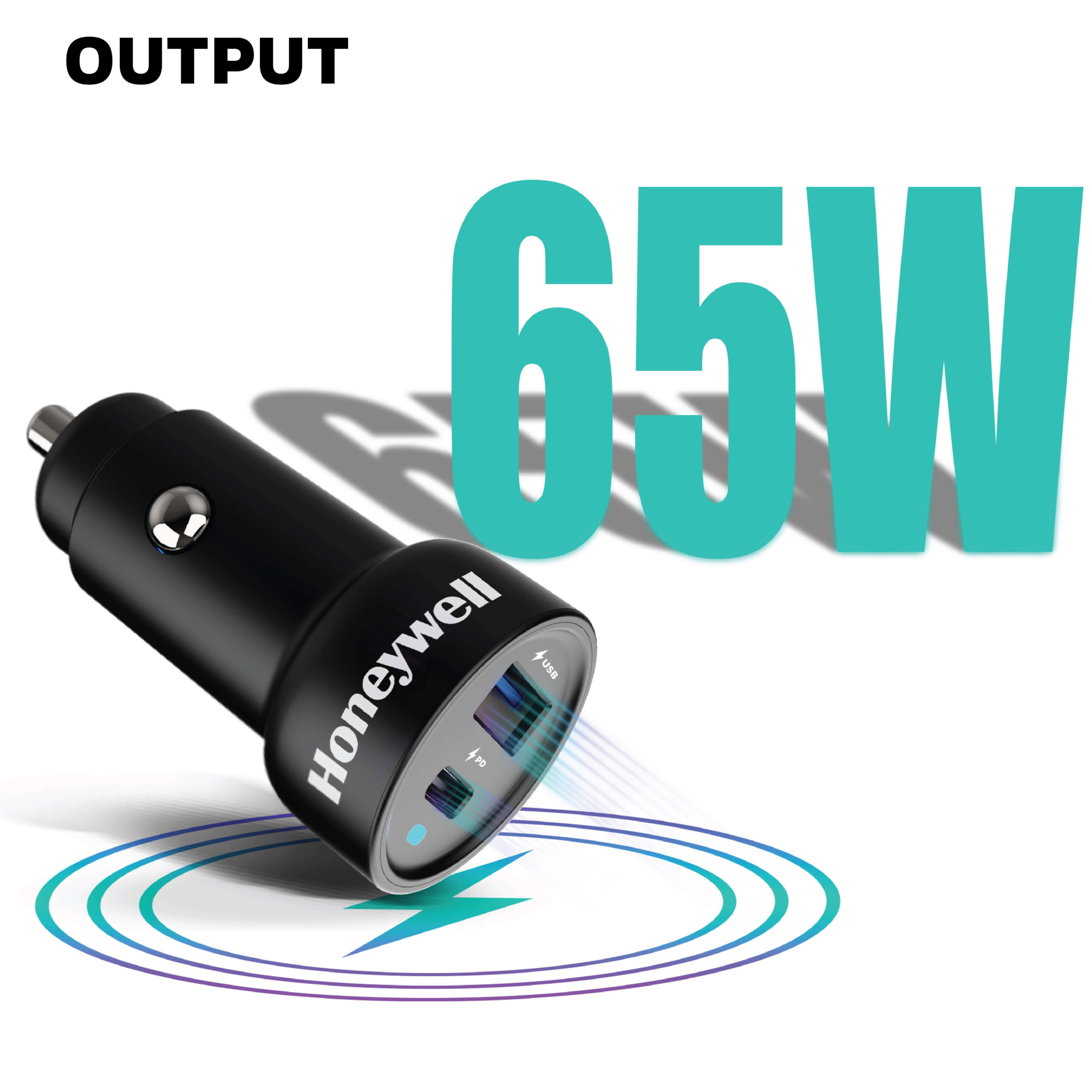 Honeywell Micro CLA 65W PD Smart Car Charger – a powerhouse for on-the-road charging. With 1x Type C and 1x USB A Port, this charger offers ultra-fast charging for both iPhone and Android devices. Designed for compatibility with all smartphones and tablets, it’s the ultimate solution for staying charged on the go. it also comes with a 3-Years Manufacturer Warranty.