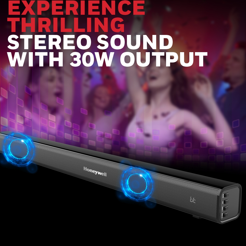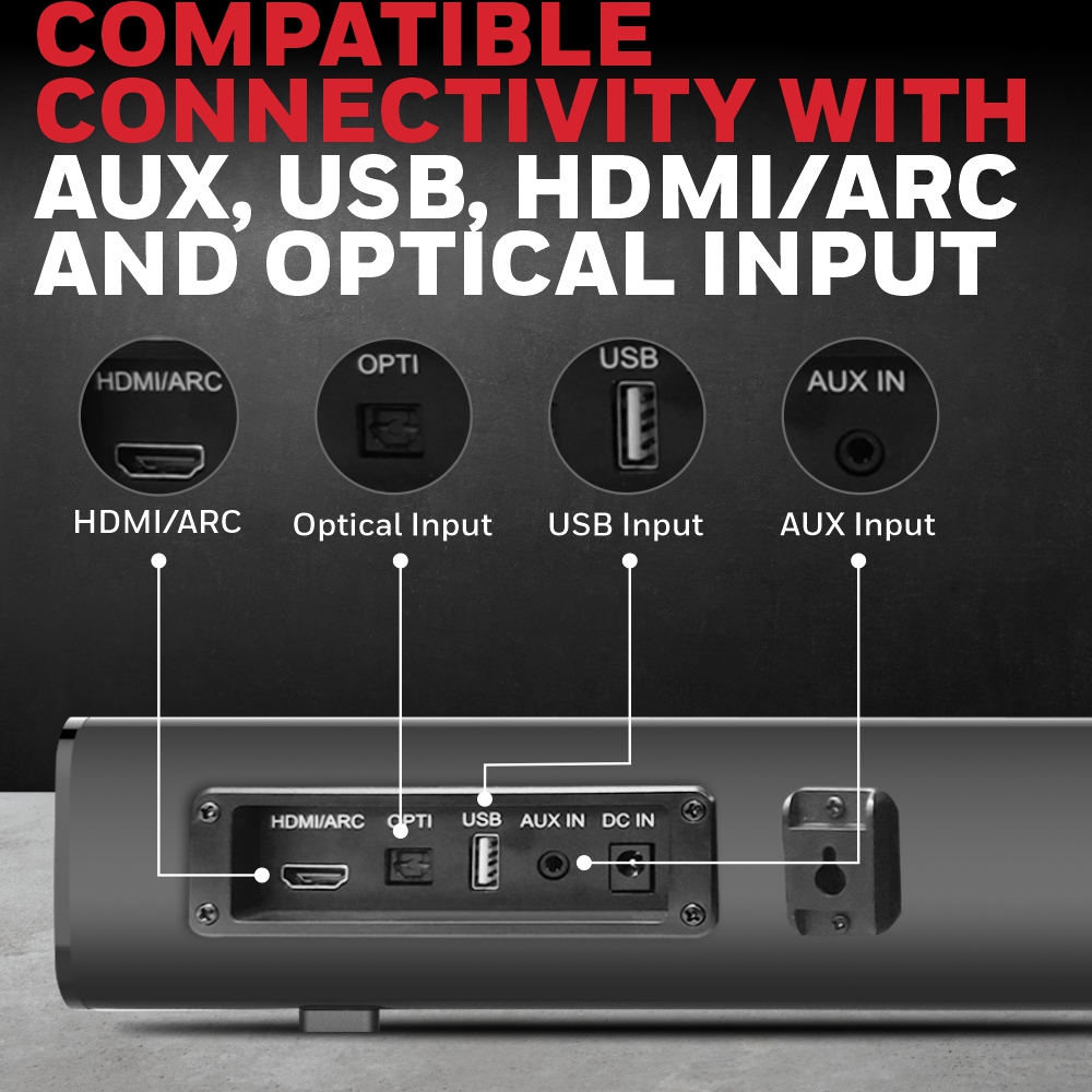 Experience powerful audio with this compact 30-Watt sound system. Two 52mm soundbar drivers offer immersive gaming and entertainment. Enjoy a theater-like experience with 2.0 Channel Sound and an in-built amplifier. Stream wirelessly via Bluetooth V5.0 from your devices, control it with the included remote, and connect through 3-in-1 options: 3.5mm Audio Jack, USB, Optical Input, and HDMI/ARC. Its sleek black glossy design adds style to any space, measuring 80cm in length. Comes with a 1-Year Manufacturer Warranty. Elevate your audio with this versatile, stylish sound solution.